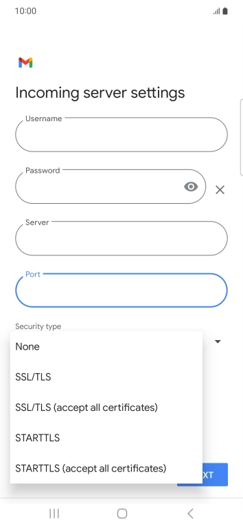 Press the field below "Server" and key in the name of your email provider's incoming server.