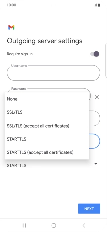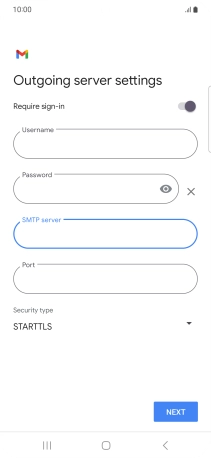 Press the field below "Username" and key in the username for your email the email provider's outgoing server.