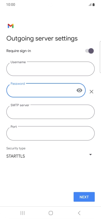 Press the field below "Password" and key in the password for your email account.