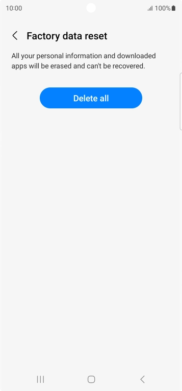 Press Delete all. Wait a moment while the factory default settings are restored. Follow the instructions on the screen to set up your phone and prepare it for use.