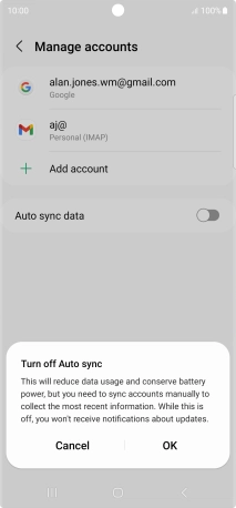 Press the indicator next to "Auto sync data" to turn the function on or off.