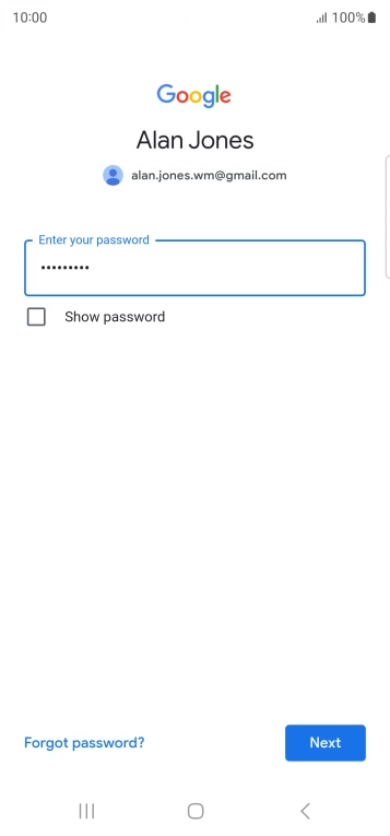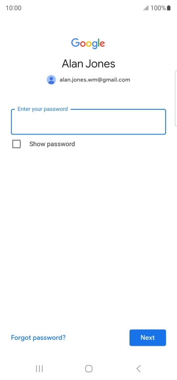 Press the field below "Enter your password" and key in the password for your Google account.
