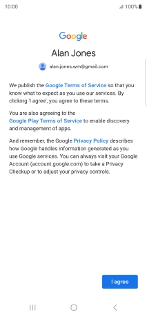 Press I agree and follow the instructions on the screen to select settings for your Google account.