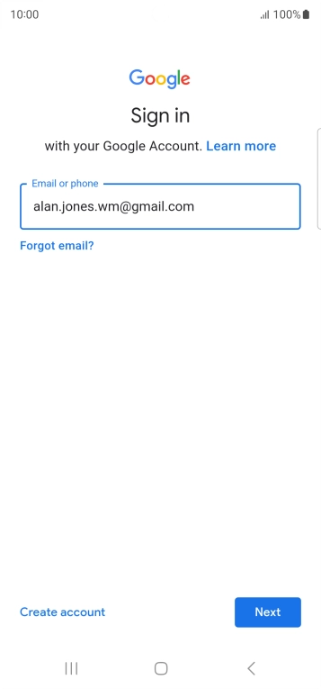 If you don't have a Google account, press Create account and follow the instructions on the screen to create an account.