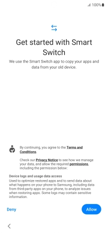 You can transfer the contents of another phone to your phone when it's activated for the first time and after a factory reset. When this screen is displayed, your phone is ready to transfer contents from another phone.