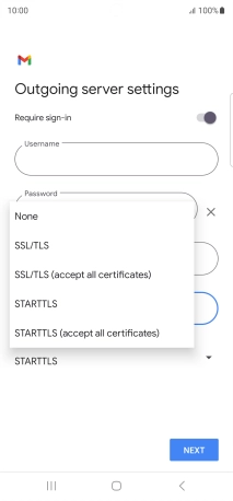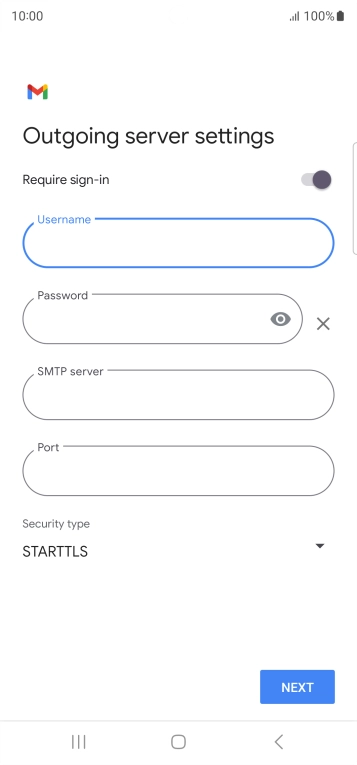 Press the field below "Username" and key in the username for your email the email provider's outgoing server.