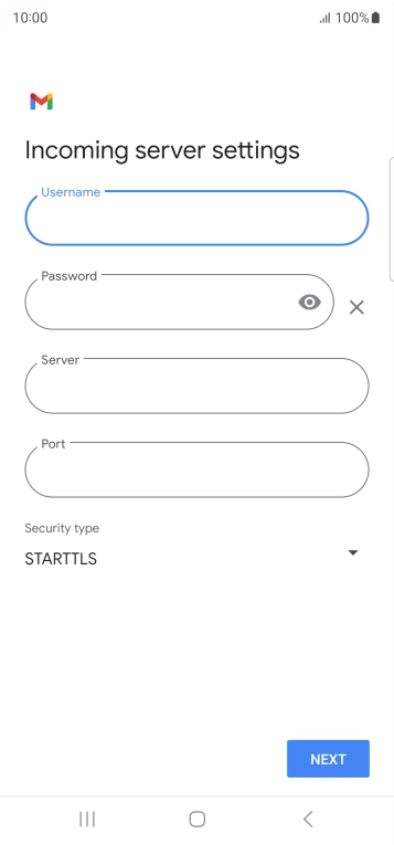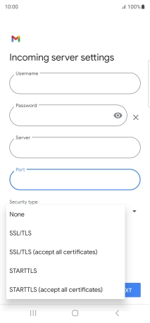 Press the field below "Server" and key in the name of your email provider's incoming server.
