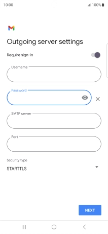 Press the field below "Password" and key in the password for your email provider's outgoing server.