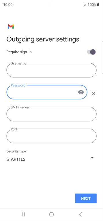 Press the field below "Password" and key in the password for your email account.