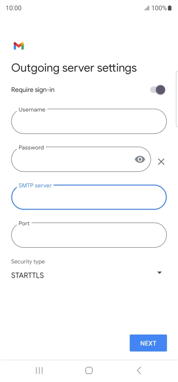 Press the field below "SMTP server" and key in the name of your email provider's outgoing server.