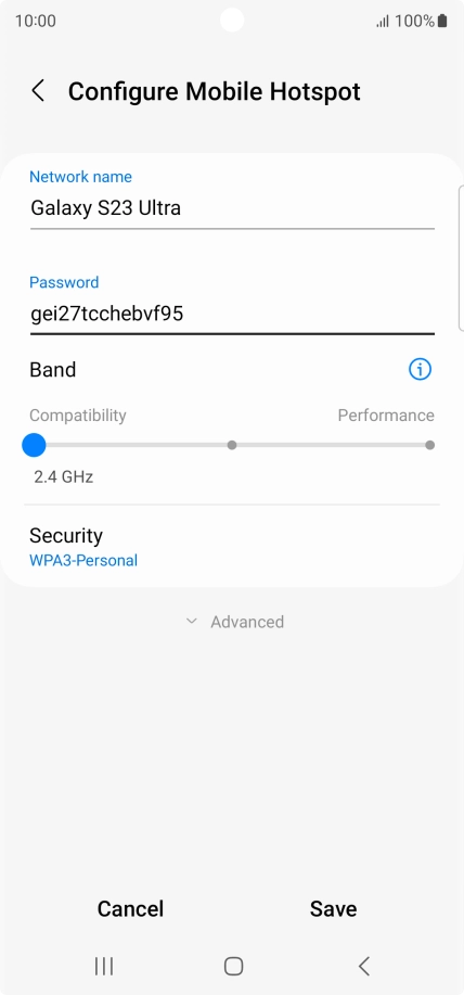 Press WPA3-Personal to password protect your Wi-Fi hotspot.