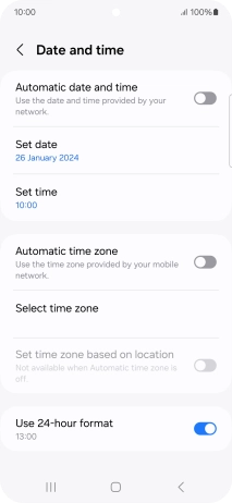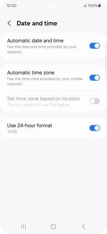 Press the indicator next to "Automatic date and time" to turn on the function.