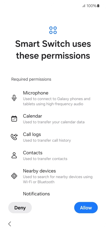 Press the required setting and follow the instructions on the screen to transfer the content from another phone.