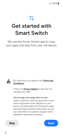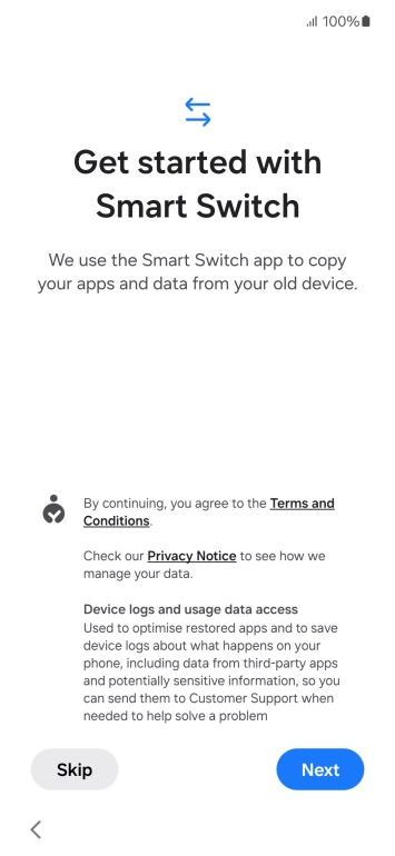 You can transfer the contents of another phone to your phone when it's activated for the first time and after a factory reset. When this screen is displayed, your phone is ready to transfer contents from another phone.