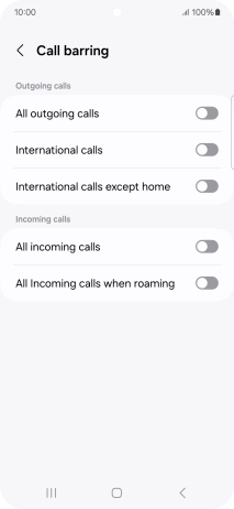 Press the indicator next to the required barring type to turn the function on or off.
