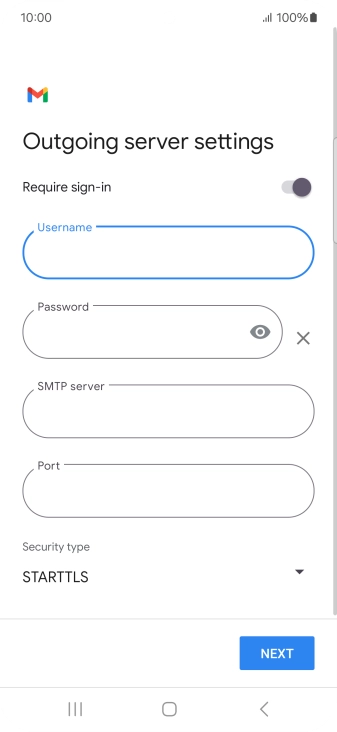 Press the field below "Username" and key in the username for your email the email provider's outgoing server.