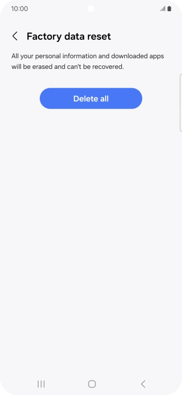 Press Delete all. Wait a moment while the factory default settings are restored. Follow the instructions on the screen to set up your phone and prepare it for use.