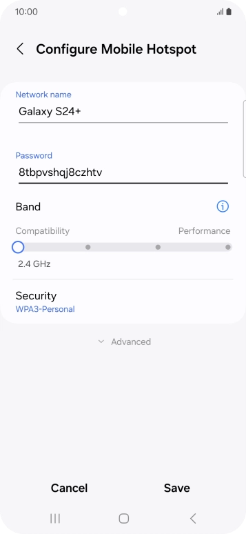 Press WPA3-Personal to password protect your Wi-Fi hotspot.