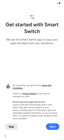 You can transfer the contents of another phone to your phone when it's activated for the first time and after a factory reset. When this screen is displayed, your phone is ready to transfer contents from another phone.