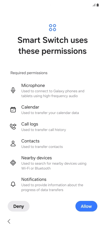 Press the required setting and follow the instructions on the screen to transfer the content from another phone.