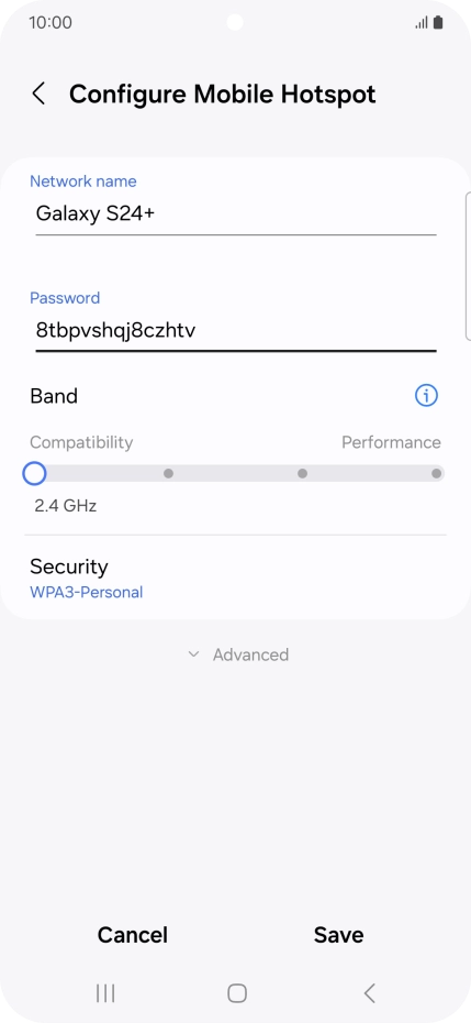 Press WPA3-Personal to password protect your Wi-Fi hotspot.
