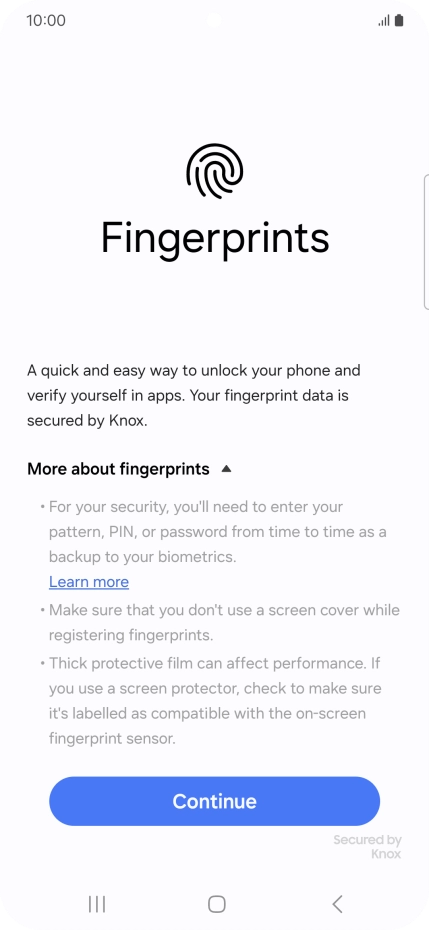 Follow the instructions on the screen to create the phone lock code using your fingerprint.