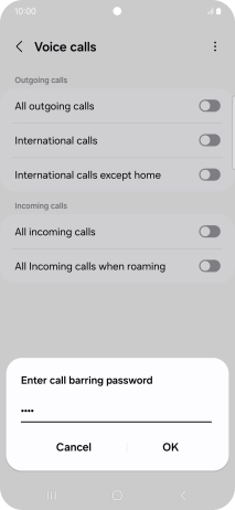 Key in your barring password and press OK. The default barring password is 0000.