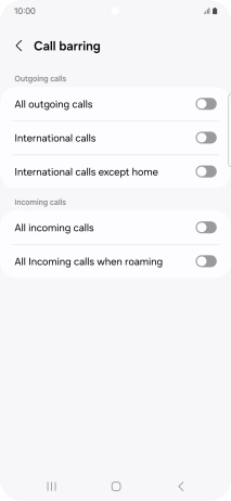 Press the indicator next to the required barring type to turn the function on or off.