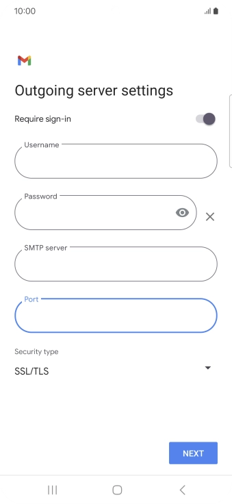 Press the field below "SMTP server" and key in the name of your email provider's outgoing server.