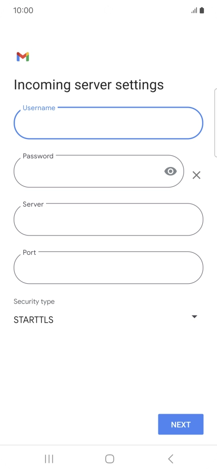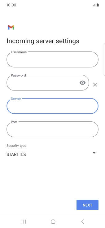 Press the field below "Server" and key in the name of your email provider's incoming server.