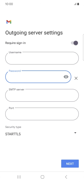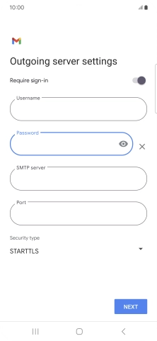 Press the field below "Password" and key in the password for your email provider's outgoing server.