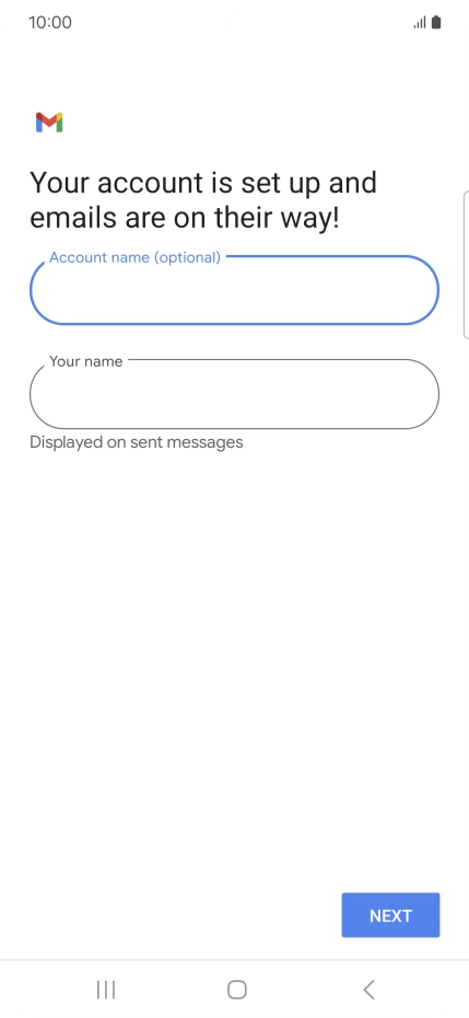 If this screen is displayed, you email account has been recognised and set up automatically. Follow the instructions on the screen to key in more information and finish setting up your phone.