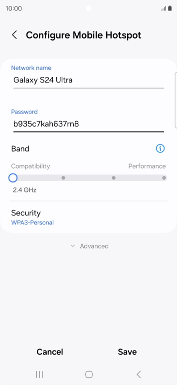 Press WPA3-Personal to password protect your Wi-Fi hotspot.