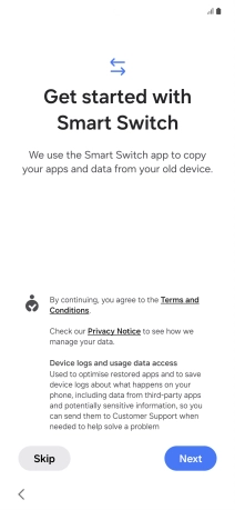 You can transfer the contents of another phone to your phone when it's activated for the first time and after a factory reset. When this screen is displayed, your phone is ready to transfer contents from another phone.