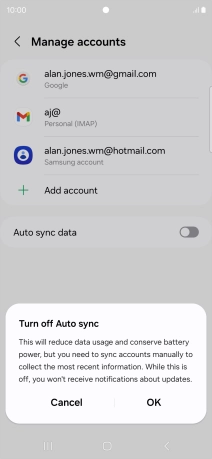 Press the indicator next to "Auto sync data" to turn the function on or off.