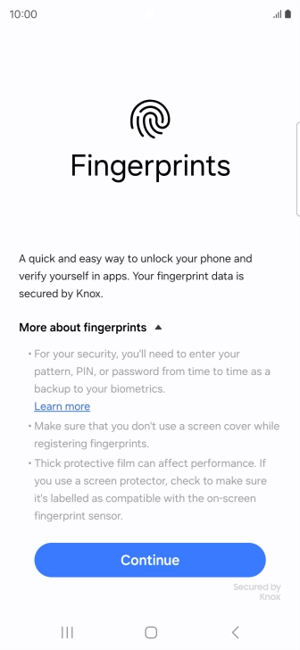 Follow the instructions on the screen to create the phone lock code using your fingerprint.
