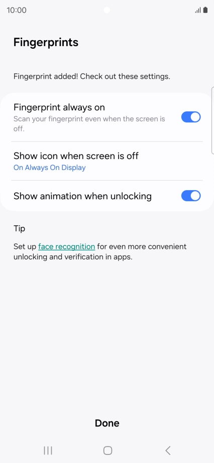 2 Create phone lock code using a fingerprint