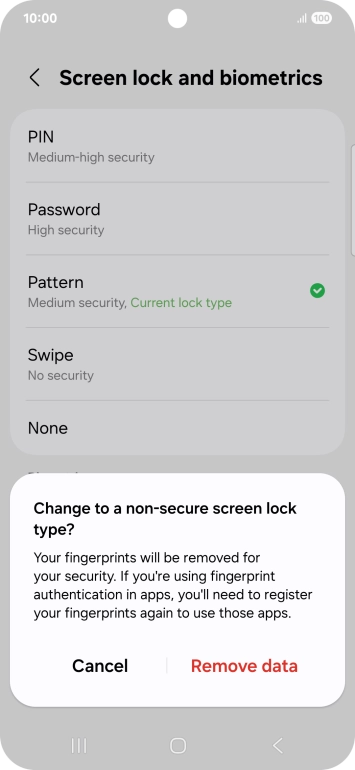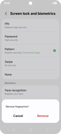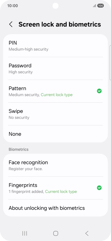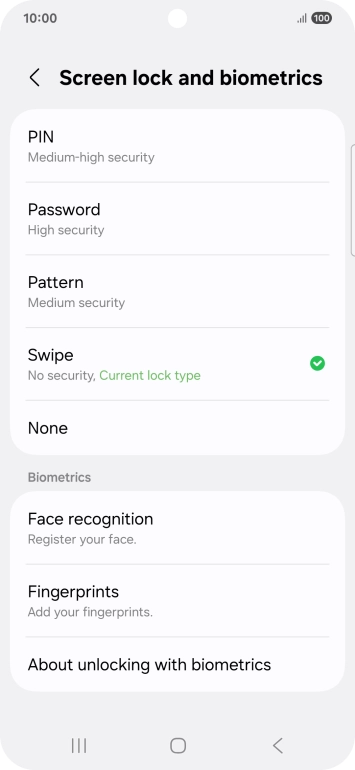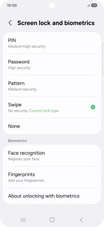 Press Screen lock and biometrics and key in the additional phone lock code you created earlier.