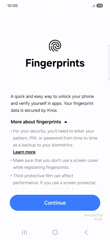 Follow the instructions on the screen to create the phone lock code using your fingerprint.