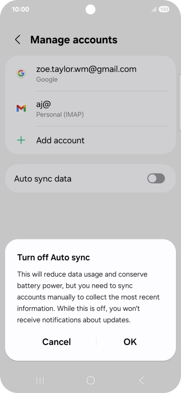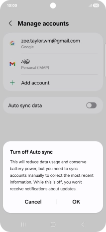 Press the indicator next to "Auto sync data" to turn the function on or off.