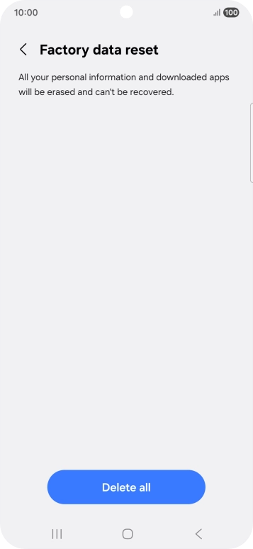 Press Delete all. Wait a moment while the factory default settings are restored. Follow the instructions on the screen to set up your phone and prepare it for use.