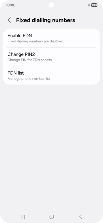 When fixed dialling is turned on, you can only call selected numbers and do emergency calls. Incoming calls aren't affected.