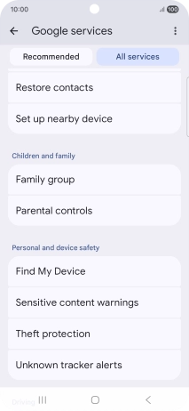 Select settings for Find My Device