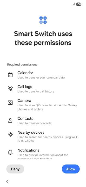 You can transfer the contents of another phone to your phone when it's activated for the first time and after a factory reset. When this screen is displayed, your phone is ready to transfer content from another phone.