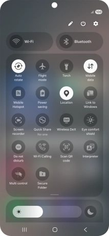 To use Galaxy AI to translate a conversation, slide your finger downwards starting from the top right side of the screen.