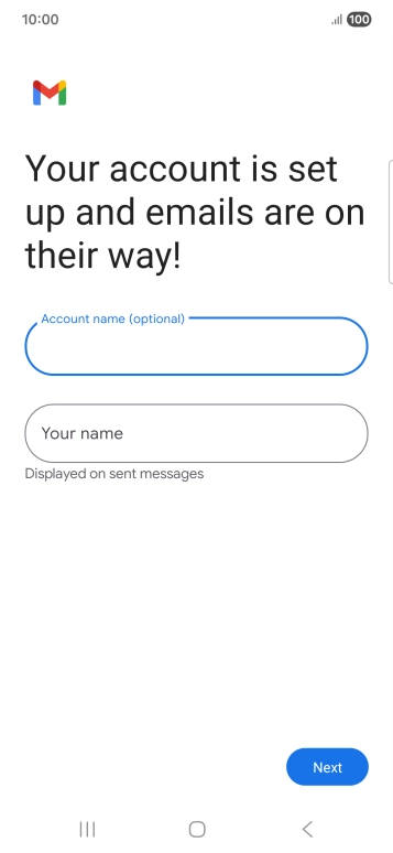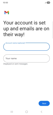 If this screen is displayed, you email account has been recognised and set up automatically. Follow the instructions on the screen to key in more information and finish setting up your phone.