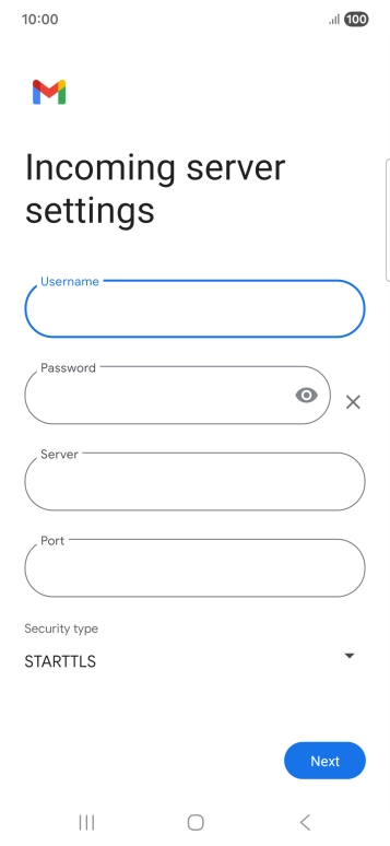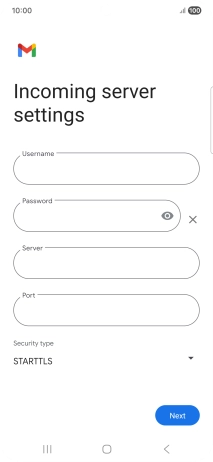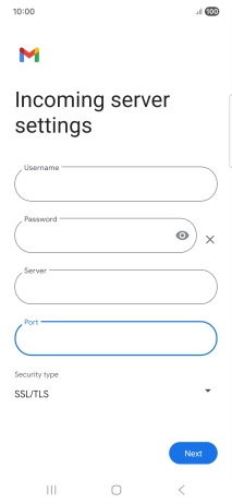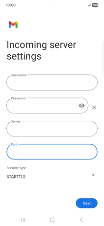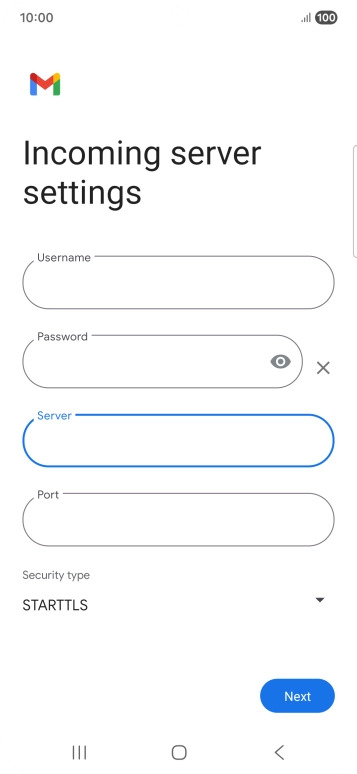 Press the field below "Server" and key in the name of your email provider's incoming server.