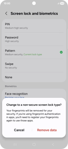 Press Screen lock and biometrics and key in the additional phone lock code you created earlier.