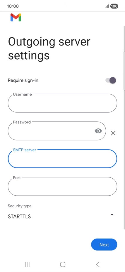 Press the field below "SMTP server" and key in the name of your email provider's outgoing server.
