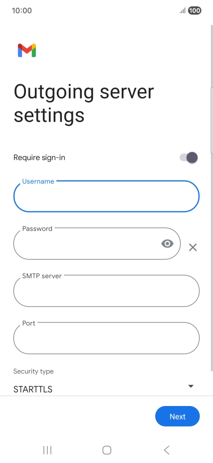Press the field below "Username" and key in the username for your email the email provider's outgoing server.